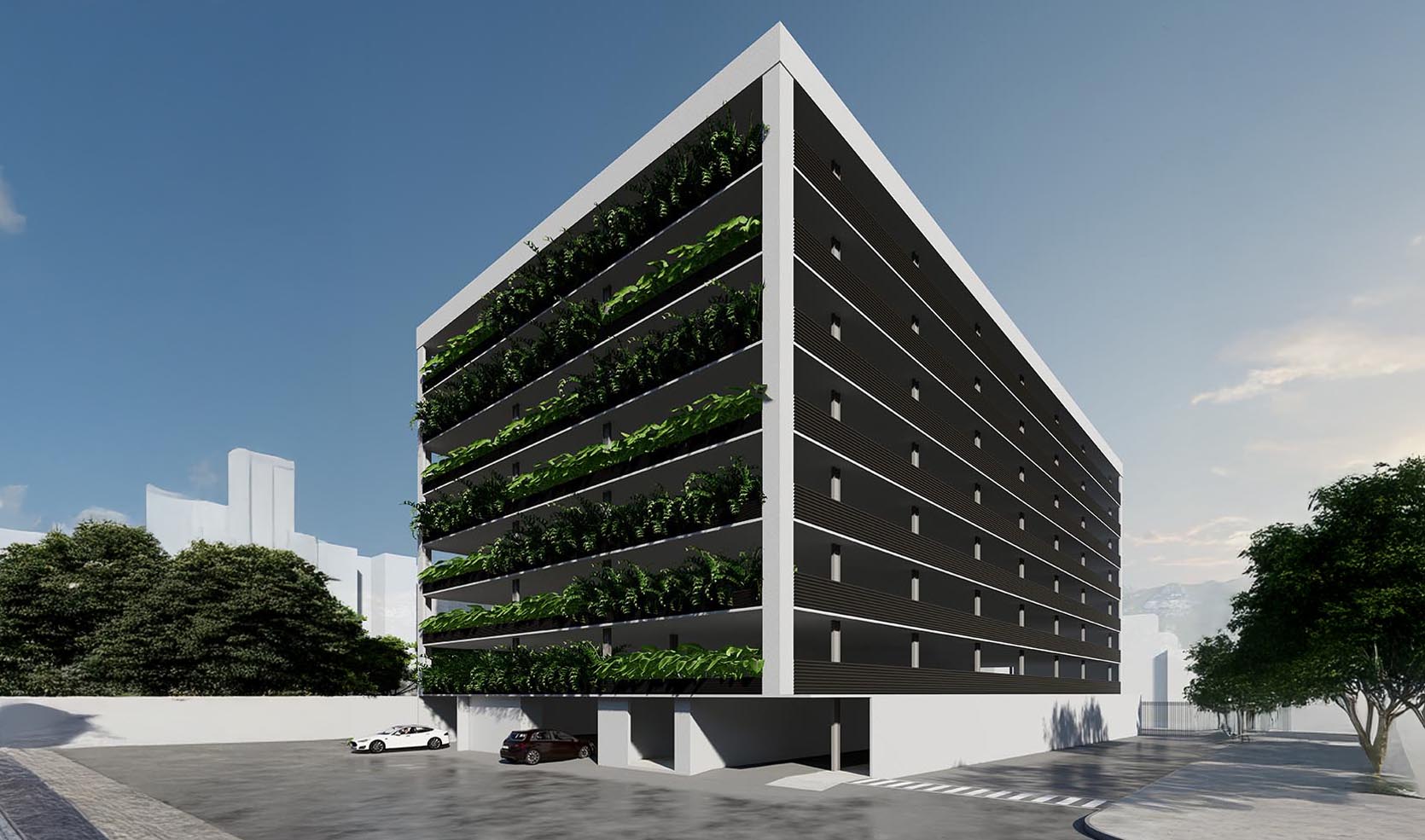 Mais do que funcional, o novo edifício garagem foi pensado para integrar-se à paisagem urbana e trazer benefícios ambientais. Sua fachada receberá intervenção paisagística com vegetação e soluções sustentáveis que contribuem para o microclima, reduzem a poluição visual e valorizam o entorno.